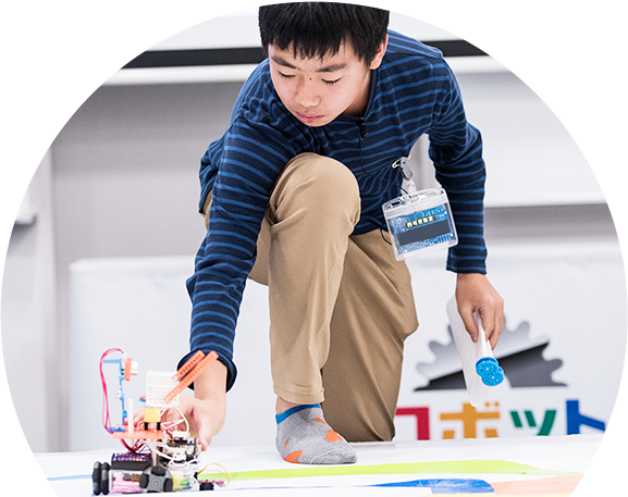 ロボット製作やプログラミングの高度な専門教育を全国で展開する、国内唯一のロボット博士養成講座※です。進化する世の中で、さまざまな問題解決ができる人材を本気で育てます。このコースは、小学校高学年以上の方が対象になります。