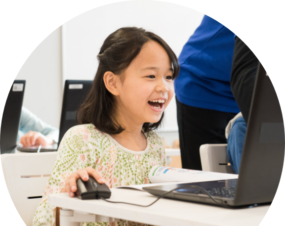 楽しく学べることを追求したオリジナル教材を使って、技術とともに考える力を養います。PCに向かう場面が多い教科にもかかわらず、お子さまの嘆声や歓声が絶えない雰囲気や、女の子の比率が高いことも特長です。