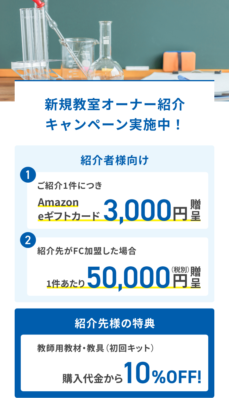 また、各種マニュアルやe-ラーニング活用による授業準備、フォローアップセミナーなど、本部の運営サポートが充実しています。