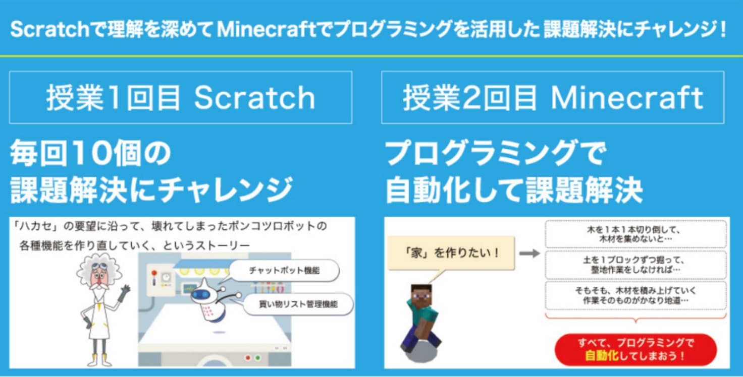 Scratchで理解を深めてMinecraftでプログラミングを使った課題解決にチャレンジします。