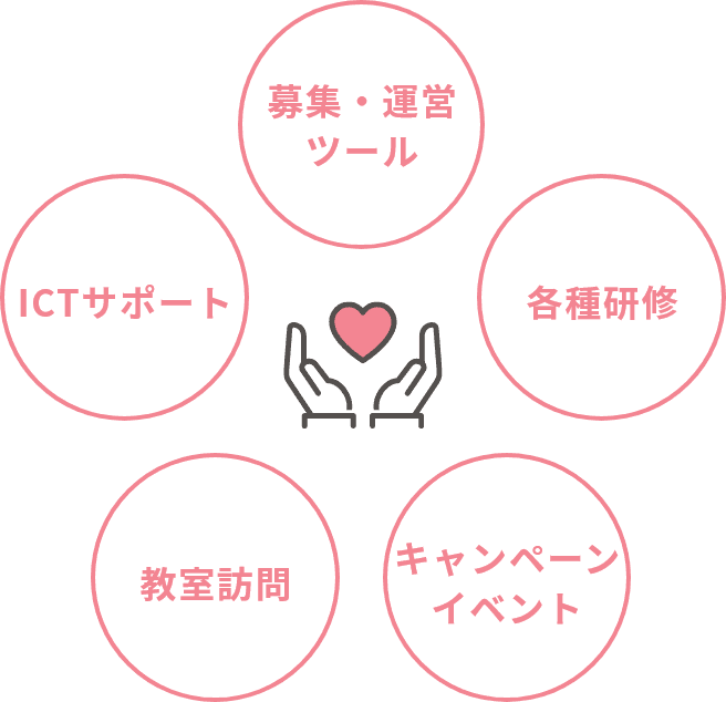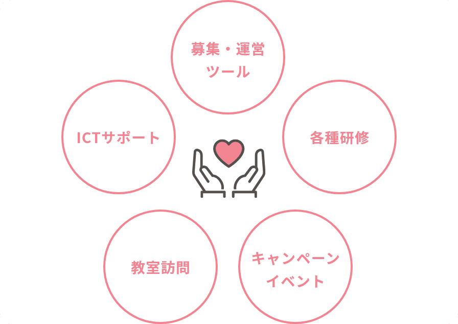 教材や実際の授業の流れについての研修の他、集客につなげる体験会やイベントなどのサポートもおまかせください!