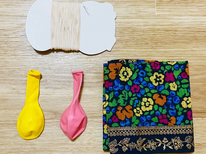 ひもをお家の人に持ってもらうか、高い所に結んで風船(A)を浮かせる。