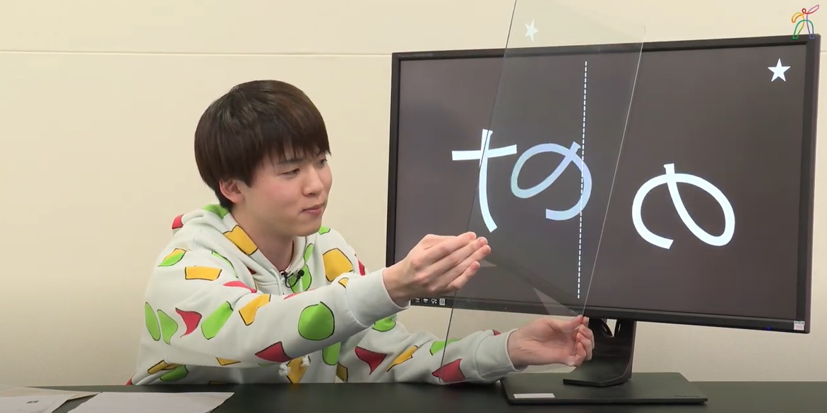 画面に映った記号を、透明な板を使って覗いてみると…?