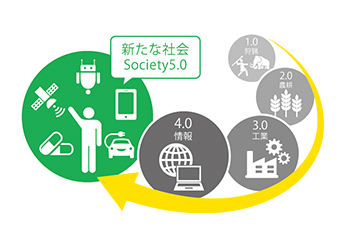 Society 5.0は、狩猟社会(Society 1.0)、農耕社会(Society 2.0)、工業社会(Society 3.0)、情報社会(Society 4.0)に続く、新たな社会を指すもので、目指すべき未来社会の姿として提唱されました。Society 5.0で実現する社会は、IoT(Internet of Things)で全ての人とモノがつながり、様々な知識や情報が共有され、今までにない新たな価値を生み出します。