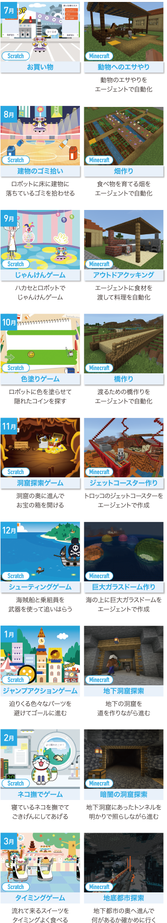 | 2回目 | Minecraft | プログラミングで自動化して課題解決 |