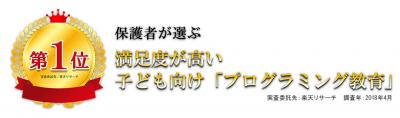 こうした点などが評価され、2018年3月に実施したアンケート調査(※1)では、「保護者が選ぶ満足度が高い子ども向け『プログラミング教育』」にて、1位を獲得いたしました。