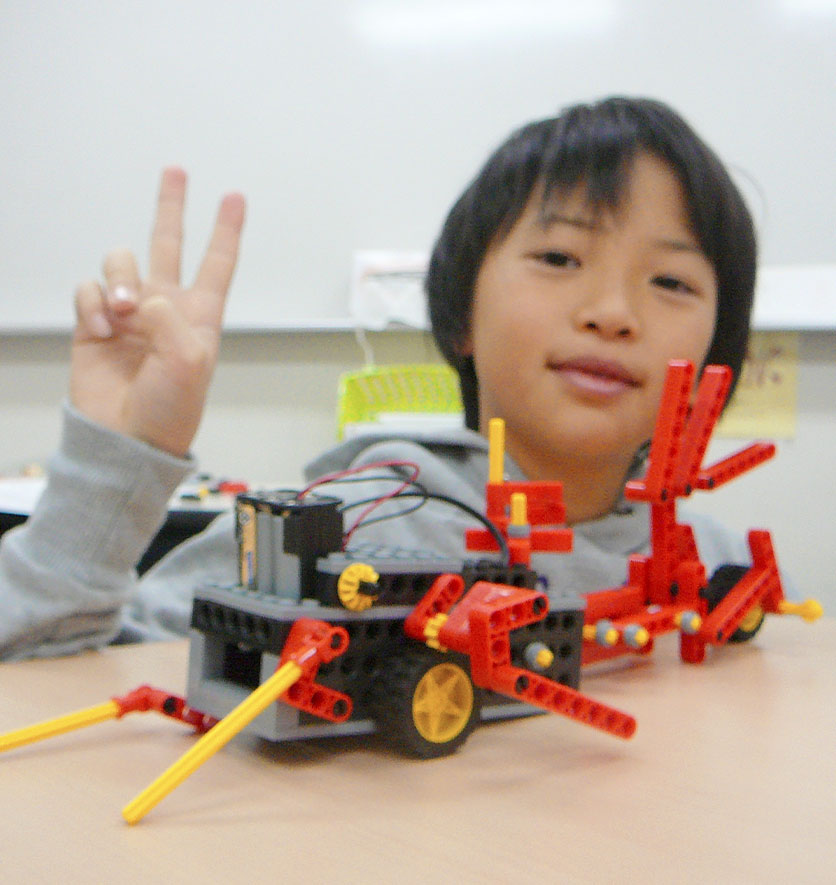 ロボット教室に通う前は、ブロックなどを使ってアニメで見たものを真似することしかできませんでしたが、通ってからは、モーターを使って車や新しいロボットが作れるようになり、自分で作ったロボットが動いた時はとても感動しました。