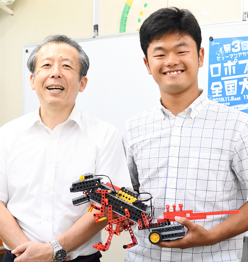 恩師の渡邊先生と。「ロボット教室は、自分を育ててくれた場所」と語る