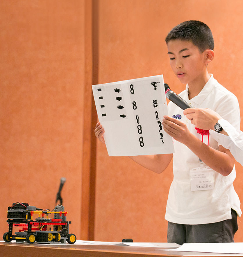 2015年度のロボット教室全国大会では、僕の作った「コピーカー」がアイデアコンテストでMVP賞を受賞しました。光センサーに写したい文字を反応させてモーターを動かし、コピーするロボットです。こだわった点は、タイヤを遅くすること。スピードが速いとどうしてもコピーが粗くなってしまうので、タイヤをゆっくり動かすことでコピーの精度を極限まで高めました。