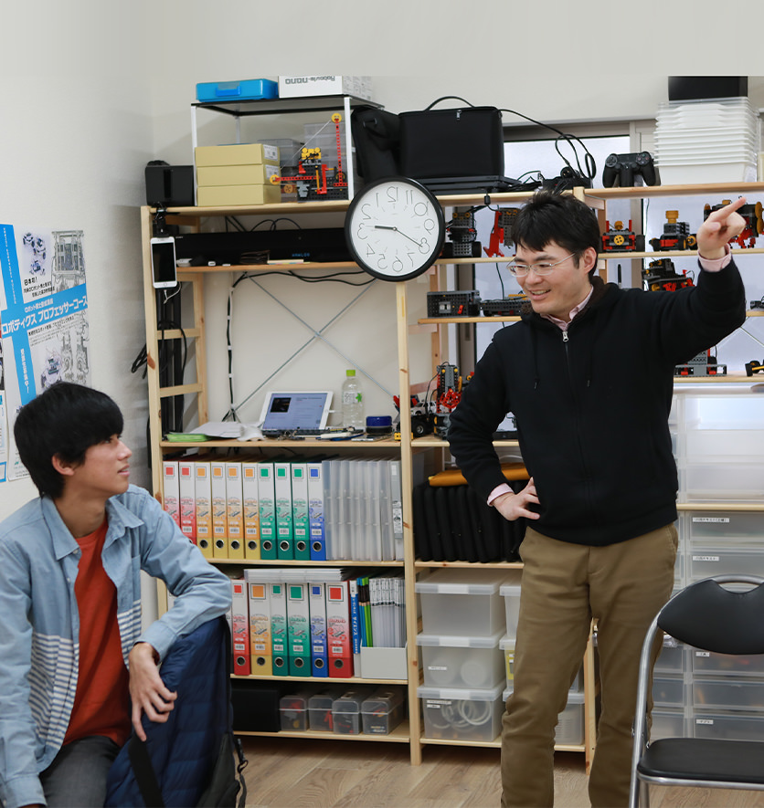 現在は神戸市立工業高等専門学校の電子工学科に通っています。進路を決めたのは中学2年生の時です。僕は何かやりたいことがあってもすぐに口に出さず、本当にやる必要があるのか熟考してから人に話すタイプ。高専のことも、自分の中で固まってから親に話しました。工業系だし偏差値も高いので不安もありましたが、応援してくれましたね。思い返してみると、ロボット教室に入会したのは親の勧め。僕がプログラミングに興味があることを知ってくれていたのだと思います。両親はいつも僕のことを全力でバックアップしてくれるので、本当に感謝しています。