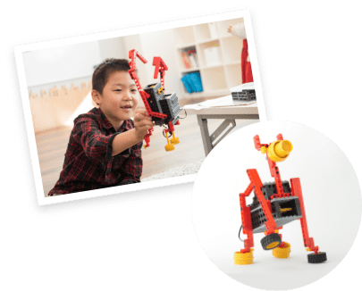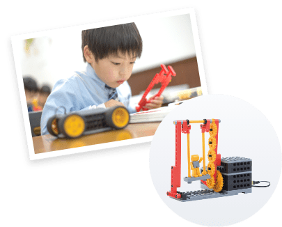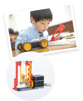 「パーツを組み立ててカタチをつくる」「仕組みがあるからカタチになったモノは動く」ことをお子さまに理解させ、