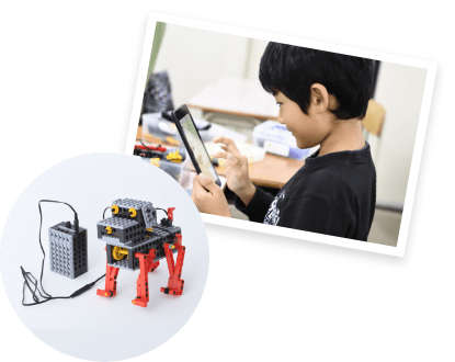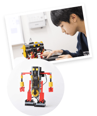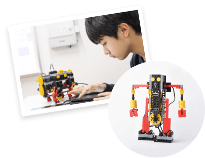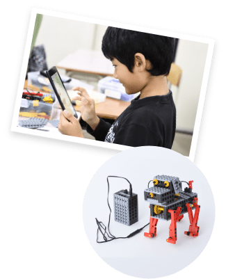 対象学年 小学校中学年~(ミドルコース修了生) ロボット製作数 12体 月数 24ヶ月 授業内容 本格ロボットの3要素である入力系(センサー)・制御系(マイコンブロック)・出力系(モーター等)を組み合わせることで、ミドルコースまでよりもより高度な「感じて、考えて、動く」自律的な賢いロボットを作り上げていく。