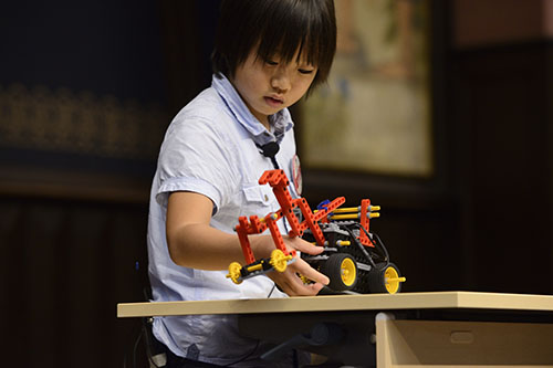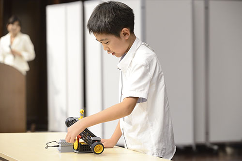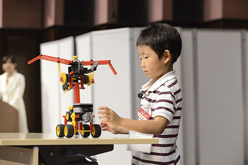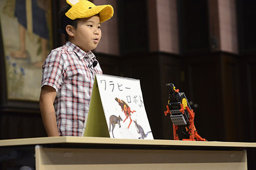 アイデアコンテストは、ロボット教室で使用しているロボットキット内の決められたパーツでロボットを製作し、会場でプレゼンテーションをします。