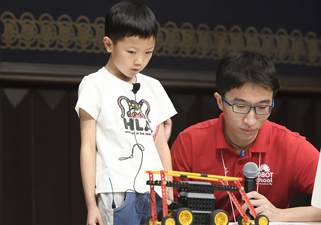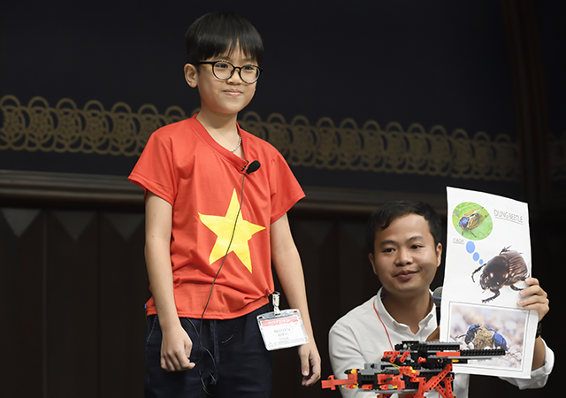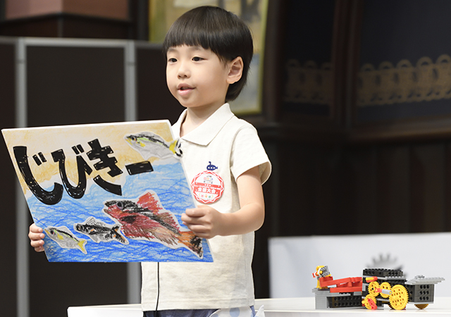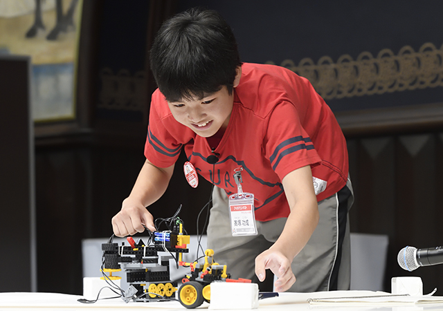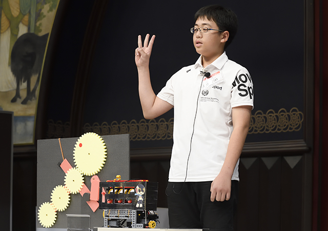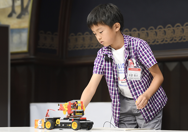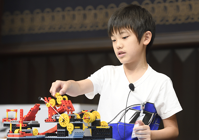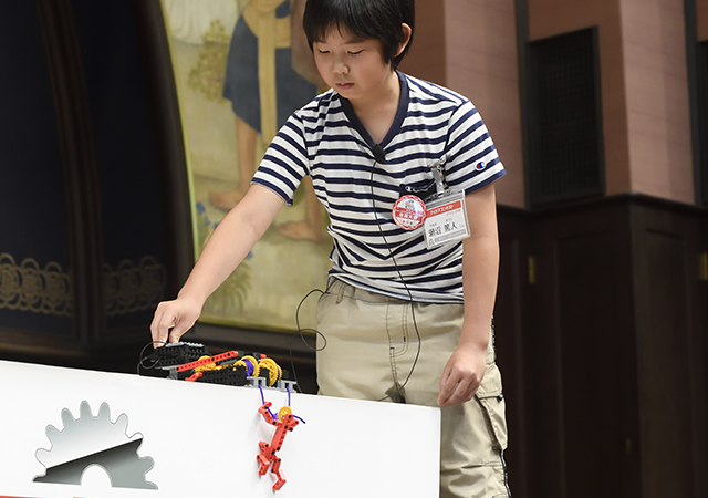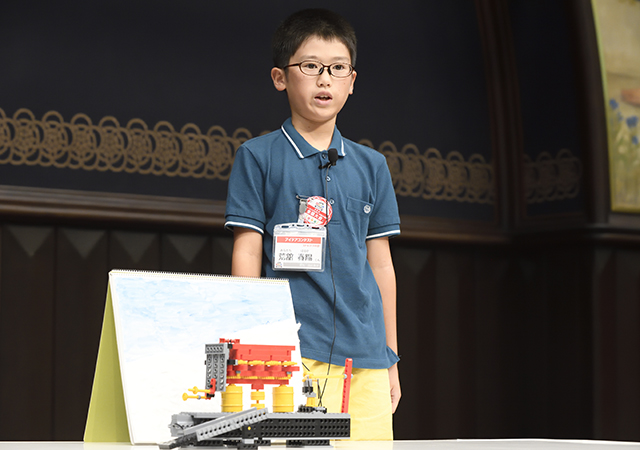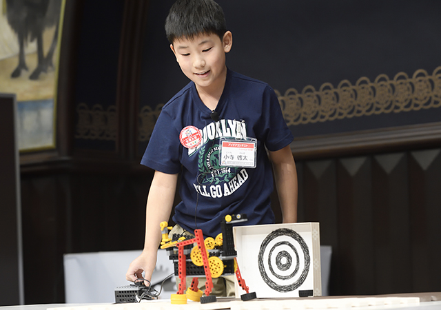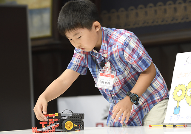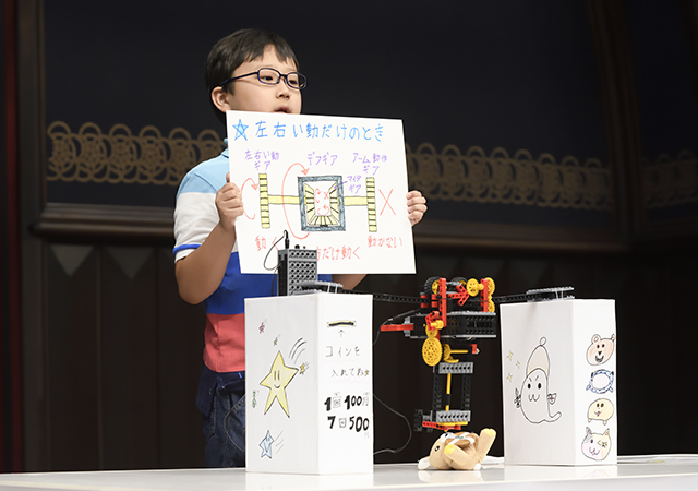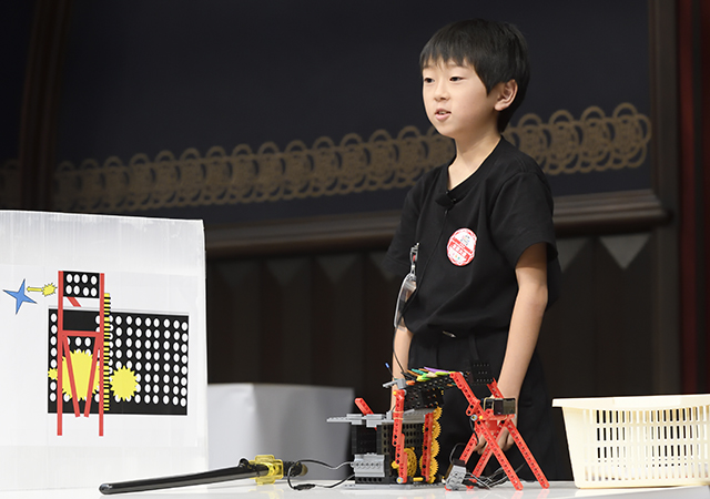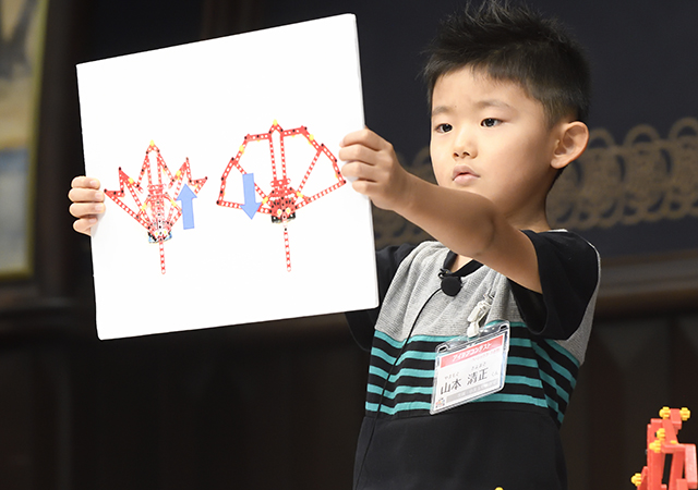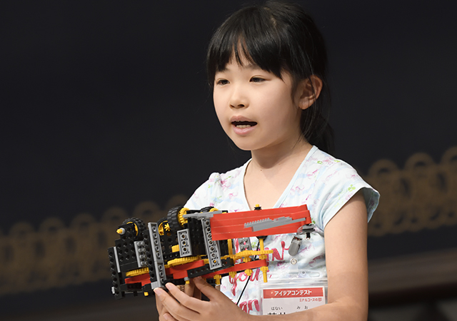 アイデアコンテストは、オリジナルキット内のパーツを使用して製作したオリジナルロボットを、実際に動かしながら、動きやデザインの特長や製作の工夫点などを2分以内で発表するコンテストです。