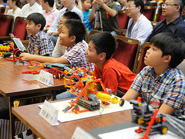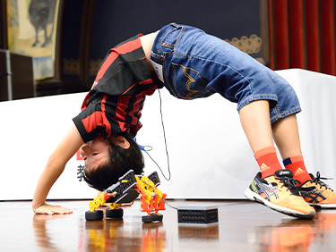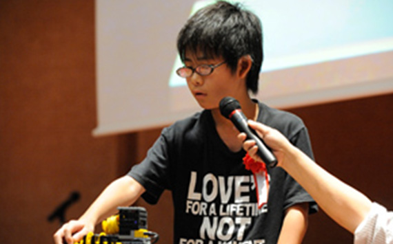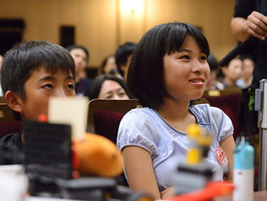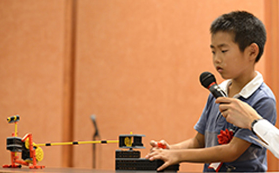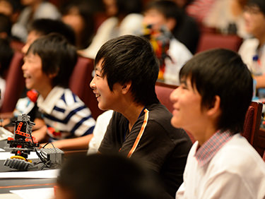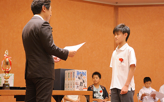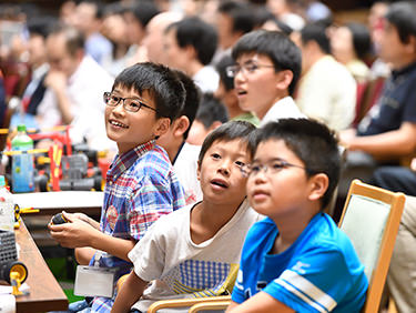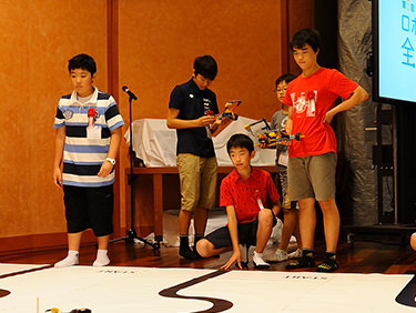第1回となるこの大会では、全国400教室、2,000名超の生徒の中から地区予選を勝ち抜いた20名が、京都大学国際交流ホールに集結!ロボット製作の第一人者で、アドバイザーを務める高橋智隆氏の講演を間に挟み、アイデアコンテストとライントレースが行われ、3時間半にわたって行われた大会は大成功のうちに幕を閉じました。