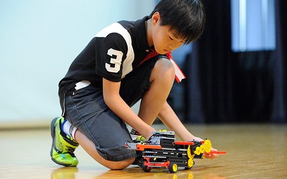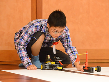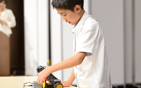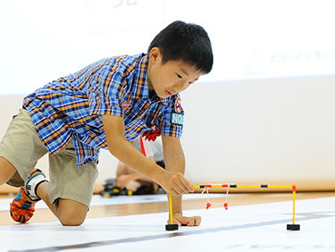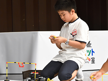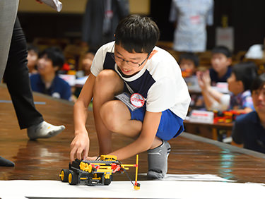 テクニカルコンテストは、線で書かれたコースを進むよう設計した「ライントレースロボット」を使い、そのゴールまでの速さを競うスピード競技です。第1回大会では、大会の最後に最上級であるアドバンスコースに在籍する生徒らによるトーナメント形式で行われ、大きな盛り上がりを見せました。