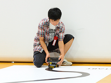 競技はロボットが一度コースを外れてしまうとスタートに戻ってやり直しとなってしまいます。しかし、記念すべき第1回大会で優勝したのは、初戦でのコースアウトをものともせず、ダントツのスピードを誇った萩原孝紀さんのロボットでした。萩原さんは自宅にコースを作り、タイムを計りながら練習を重ねたとのことでした。大会までにロボットの重心やセンサーを調整し、試行錯誤を繰り返した努力が功を奏しての優勝でした。
