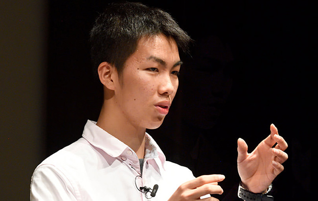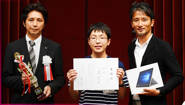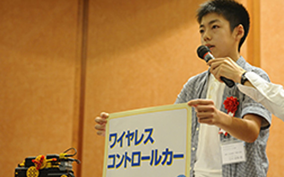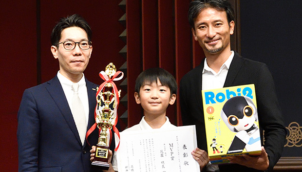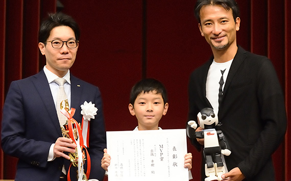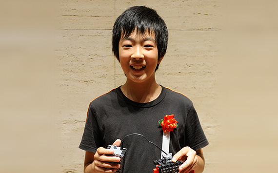 MVP賞 大本 航太郎さんコピーが粗くならないよう、タイヤの回転速度を遅らせることにこだわったと受賞作を振り返る大本さん。現在は高校で剣道に打ち込む一方、ロボット教室プロフェッサーコースに通っているそうです。