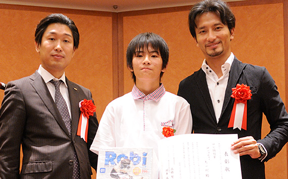 3位入賞 前田 真治さん本番は失敗と奇跡が重なって3位に入賞でき、憧れの高橋先生とツーショットが取れたと振り返る前田さん。現在はロボットより大きいもの製造に興味が出て、大阪大学で建築・土木・造船を学んでいるそうです。