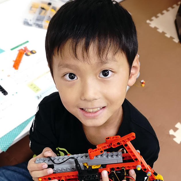 「ロボコロン」ロボコロンはいっしょに遊べるロボットです。工夫した点は、ライトと光センサーを組合わせて、変数を作ったことです。ライトの明るさをくるくると切り替えたり、光センサーで読み取ることで、ロボットの動作をいろいろと切り替えています。