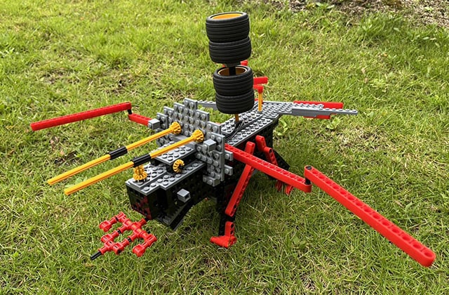 テクニカルコンテストは、規定エリア内に設置した、ボトルキャップを1つずつ運び、2つのエリアのケースの中に入れます。