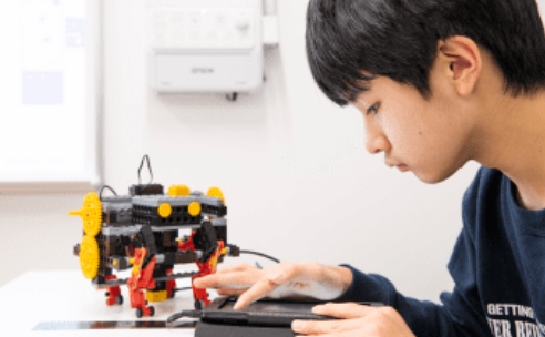プログラミングで自律的に動くロボットを作ります。試行錯誤する過程で、問題解決法を論理的に考える「プログラミング的思考力」をさらに高めます。
