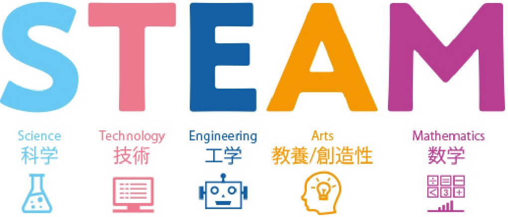 STEAM教育とは、5つの単語の頭文字をつなげた造語であり、各教科での学習を実社会での課題解決に生かしていくための教科横断的な教育手法です。STEAM教育の根底には「自分で学び、自分で理解していく子ども」を育てるねらいがあります。
